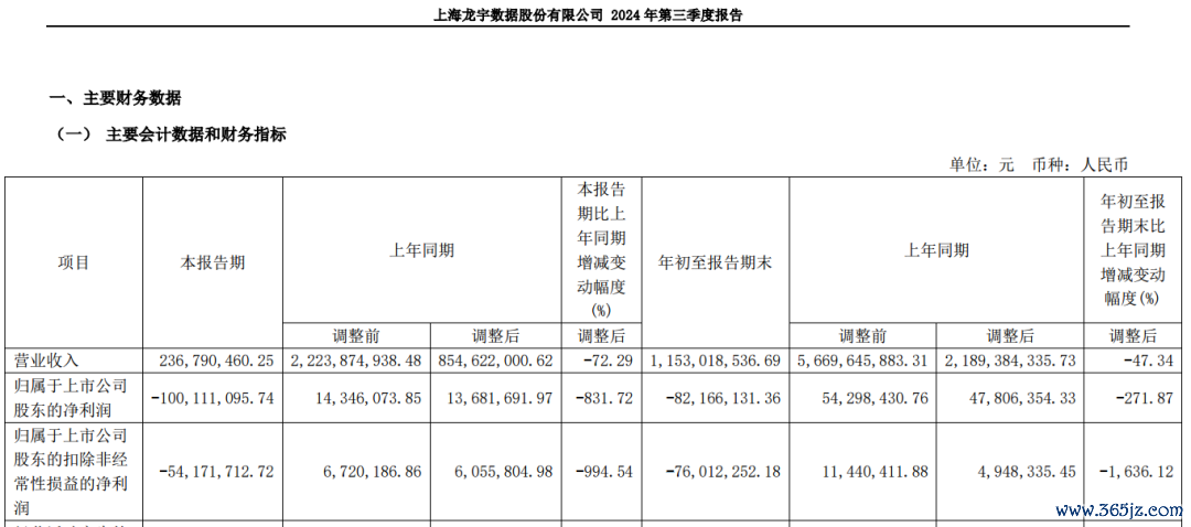 2024年前三季度,*ST龙宇实现营业收入11.53亿元,同比下降47.34%;归母净利润为-8216.61万元线上炒股配资,同比下降271.87%。